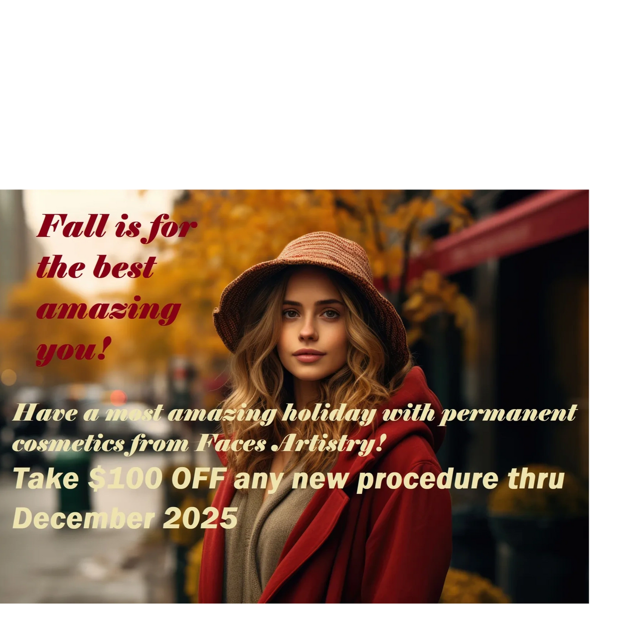 At Faces Artistry Permanent Makeup , I specialize in providing top-quality permanent makeup services to my clients. My experience and highly skilled technical skills combine to provide state-of-the-art tools and techniques to create the perfect look for you. Whether you're looking for microblading, micro hair strokes, (same as nano hairstroke) micro shading , or powder style eyebrows, bold or subtle eyeliner, lip blush, liner, full lip color or camouflage, we have you covered. I pride myself on delivering exceptional results and ensuring my clients are satisfied with every aspect of my service. Contact me today to book your appointment!
